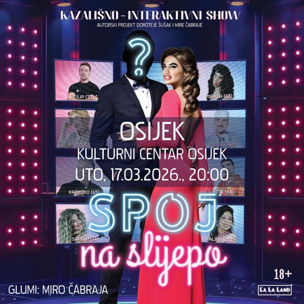 Darujemo karte za “Spoj na slijepo” u Kulturnom centru Nakon što je osvojio srca publike hit predstavom Baka ima dečka, glumac i televizijski voditelj Miro Čabraja vraća se na kazališne daske s novim autorskim projektom koji pomiče granice kazališta. Riječ je o prvom kazališno-interaktivnom showu u Hrvatskoj – “Spoj na slijepo”, u kojem Čabraja u nešto više od sat vremena…