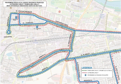 Tako će, pojašnjavaju u GPP-u, zbog radova na modernizaciji tramvajske infrastrukture privremeno biti obustavljen promet na dijelu Vinkovačke ceste od kružnog toka Đakovština do križanja s Dunavskom ulicom od 28. srpnja do 3. listopada.