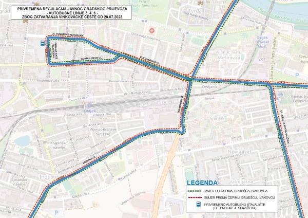 GPP Osijek preusmjerava trase linija javnog prijevoza zbog privremenog zatvaranja Vinkovačke ceste.